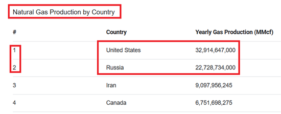 圖1:美國和俄羅斯是全球最大的兩個天然氣生產國