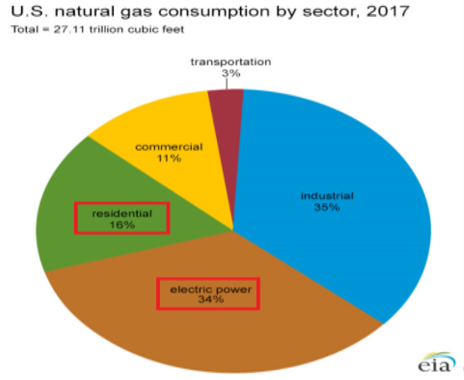 圖4:住宅和發(fā)電需求占全美天然氣消費量一半