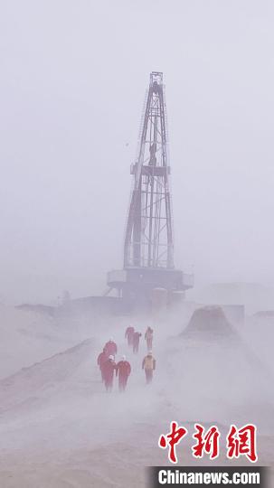 圖為青海油田工作人員在漫天黃沙中前行。青海油田供圖