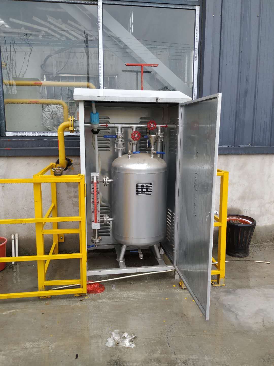 銳鋒無(wú)動(dòng)力加劑機(jī)及銳鋒增效劑于2020年3月30日在浙江湖州安裝調(diào)試完畢。本產(chǎn)品為氣液自動(dòng)混合裝置,是我公司自有知識(shí)產(chǎn)權(quán),委托燃?xì)庠O(shè)備制造有限公司生產(chǎn)。主要用于工業(yè)燃?xì)馀c添加劑的預(yù)混。液態(tài)添加劑預(yù)先加入混合柜,氣體通過(guò)混合柜后可進(jìn)行自動(dòng)均勻混合,從而改善工業(yè)燃?xì)獾南嚓P(guān)性能,達(dá)到預(yù)期目的。