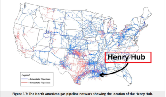圖2:美國的天然氣管線網(wǎng)絡(luò)與亨利港(Henry Hub)的位置