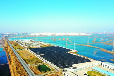 勝利油田海洋采油廠供應(yīng)站資產(chǎn)庫周邊區(qū)域光伏發(fā)電項目。張 燦 攝