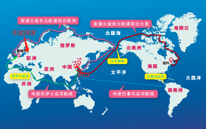 該白皮書的撰寫者之一趙隆表示,“隨著全球氣候持續(xù)轉(zhuǎn)暖,據(jù)估計,東北航道會在50年后全年通航。屆時也意味著中國通往歐洲及北美的遠(yuǎn)洋航運(yùn),相比傳統(tǒng)繞道蘇伊士運(yùn)河或巴拿馬運(yùn)河的航線,運(yùn)輸成本也將減少20%至30%?!?